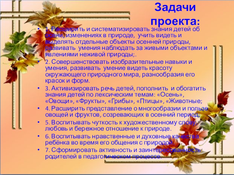 1. Расширить и систематизировать знания детей об осени, изменениях в