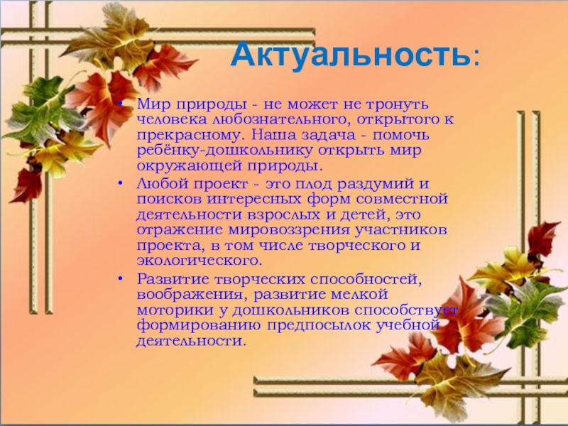 любознательного, открытого к прекрасному. Наша задача - помочь ребёнку-дошкольнику открыть мир окружающей природы.