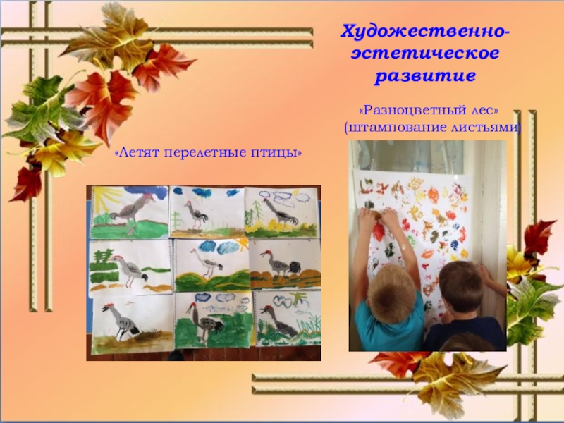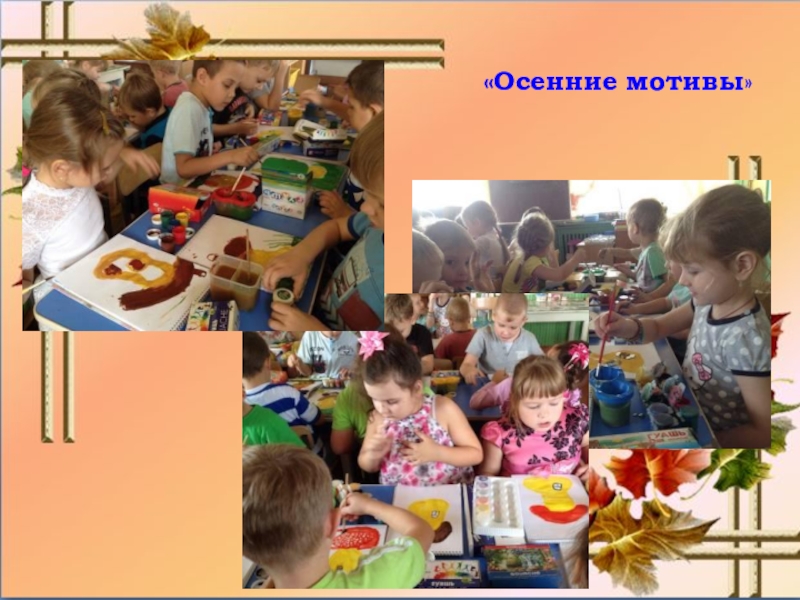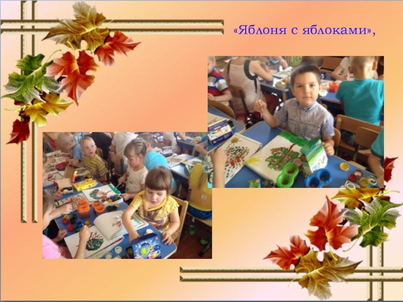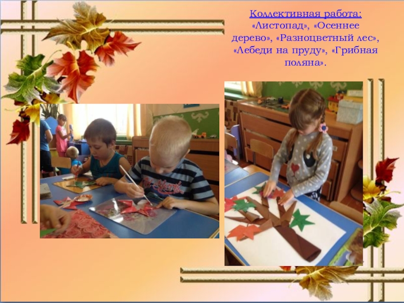 Слайд 33Коллективная работа: «Листопад», «Осеннее дерево», «Разноцветный лес», «Лебеди на пруду», «Грибная