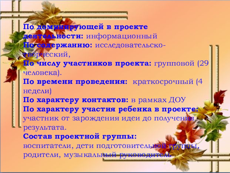 Слайд 2По доминирующей в проекте деятельности: информационный