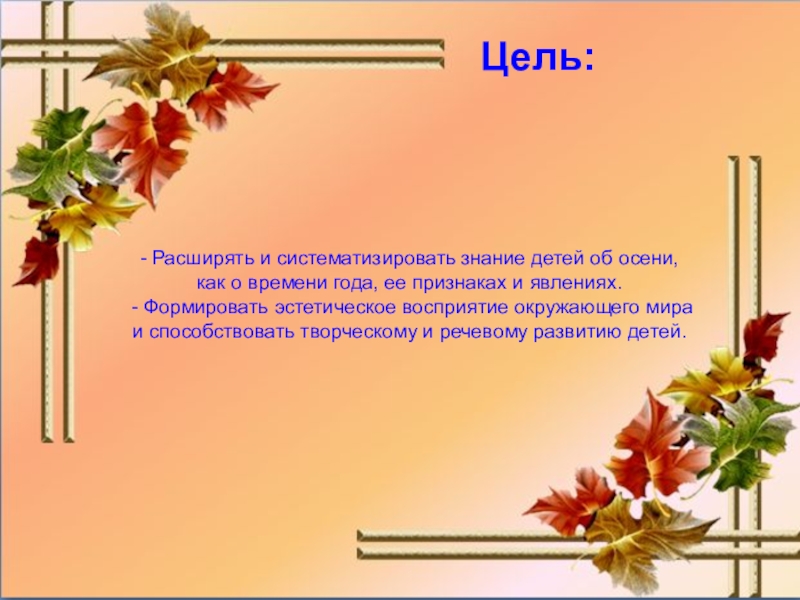 Слайд 5- Расширять и систематизировать знание детей об осени, как о времени