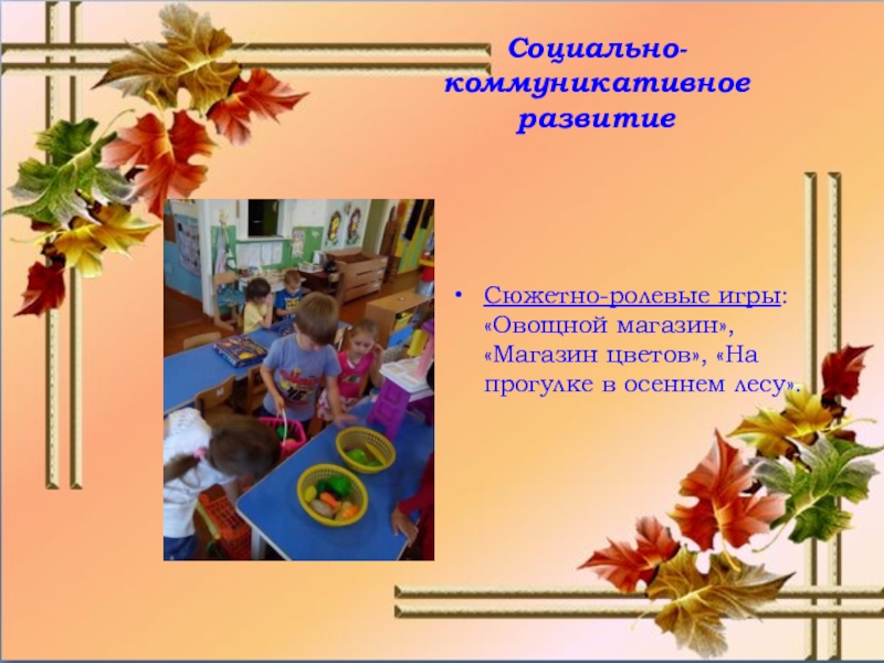 Сюжетно-ролевые игры: «Овощной магазин», «Магазин цветов», «На прогулке в осеннем