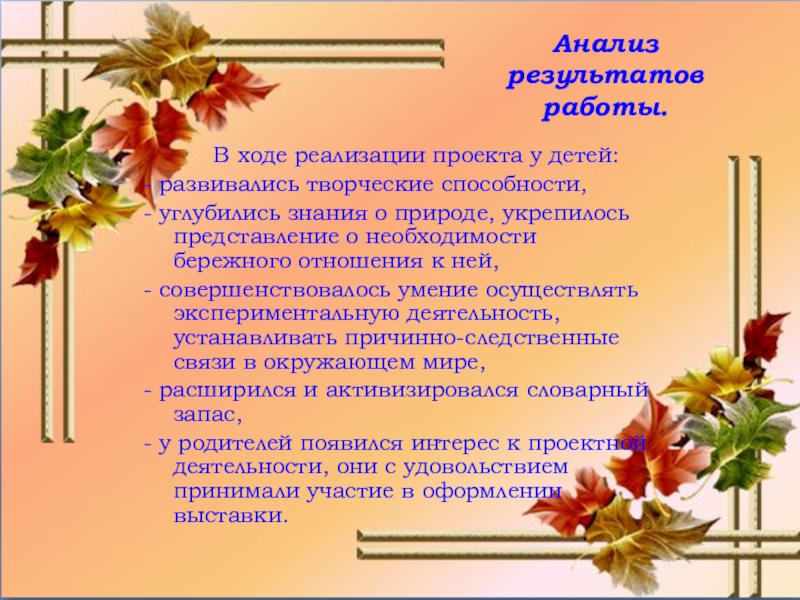 - углубились знания о природе, укрепилось представление о необходимости бережного отношения к ней,