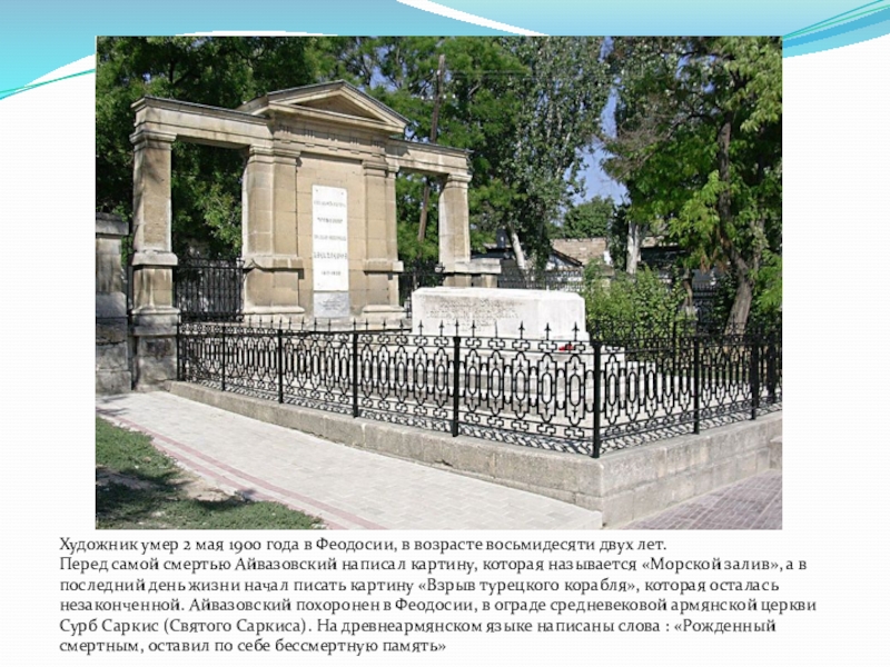 Слайд 11Художник умер 2 мая 1900 года в Феодосии, в возрасте восьмидесяти