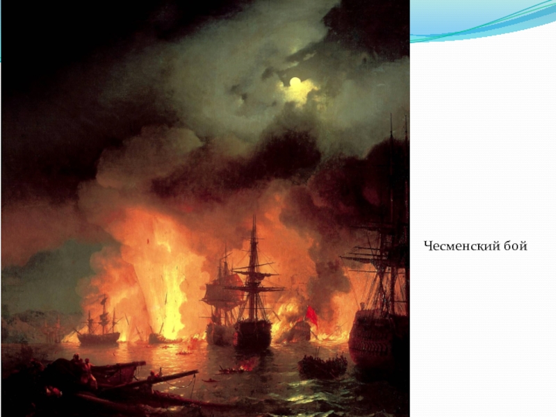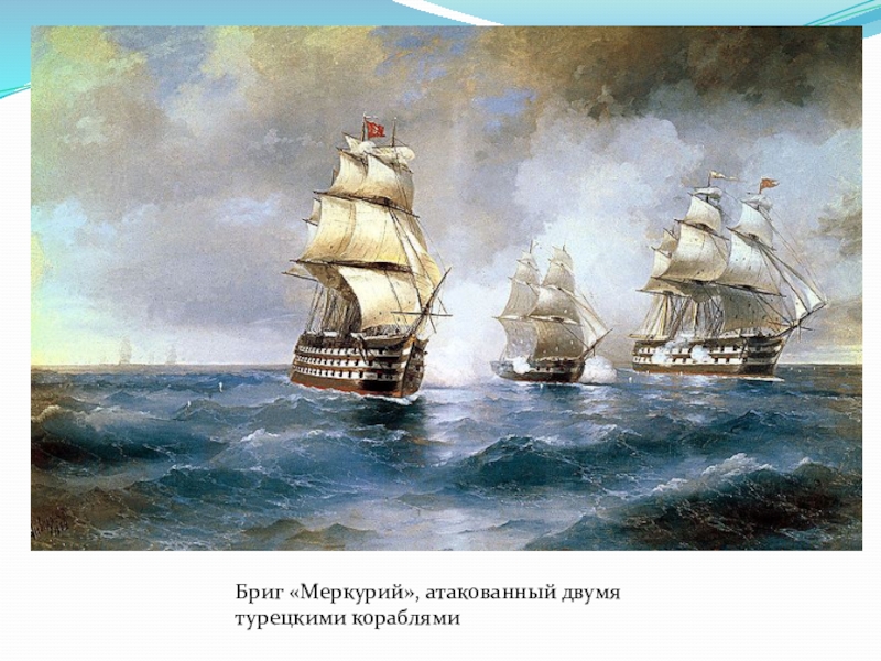 Слайд 4Бриг «Меркурий», атакованный двумя турецкими кораблями