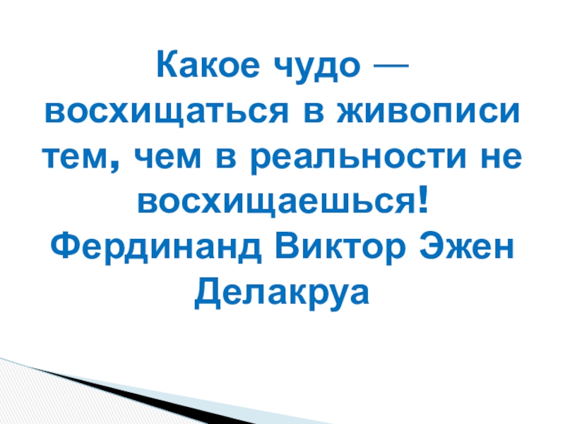 Слайд 16Какое чудо — восхищаться в живописи тем, чем в реальности не