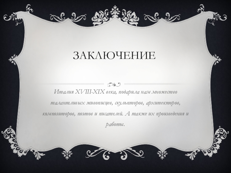 Италия XVIII-XIX века, подарила нам множество талантливых живописцев, скульпторов, архитекторов, композиторов,