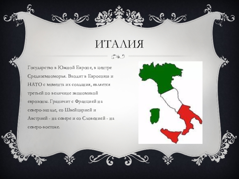 НАТО с момента их создания, является третьей по величине экономикой еврозоны. Граничит с Францией на северо-западе, со Швейцарией и Австрией - на севере и со Словенией - на северо-востоке.