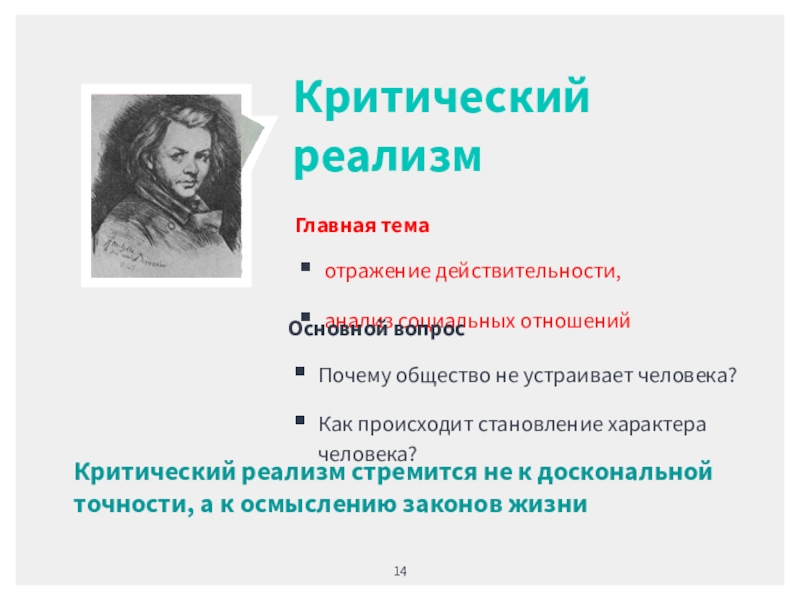 Критический реализм стремится не к доскональной точности, а к осмыслению законов жизни