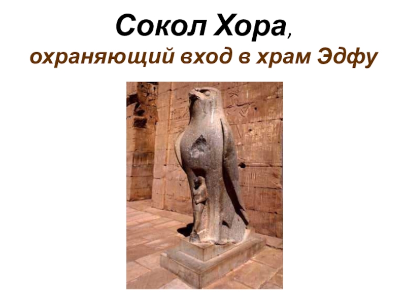 Слайд 5Сокол Хора, охраняющий вход в храм Эдфу