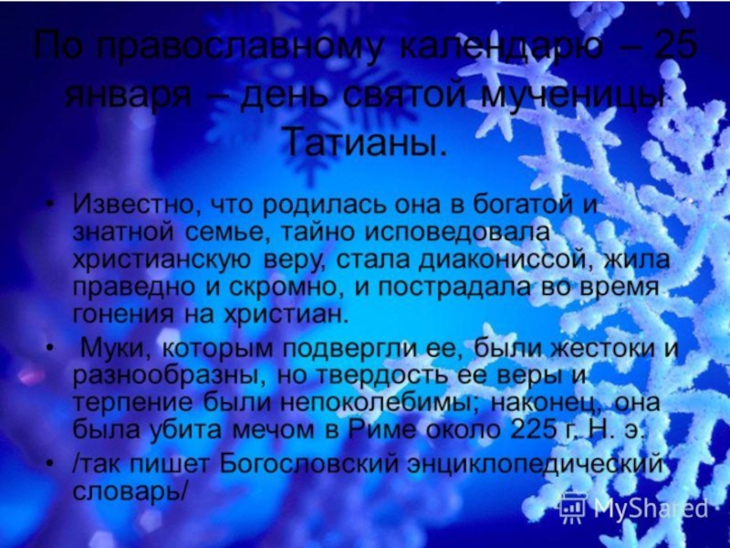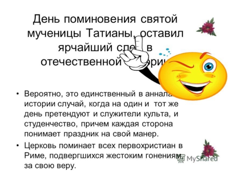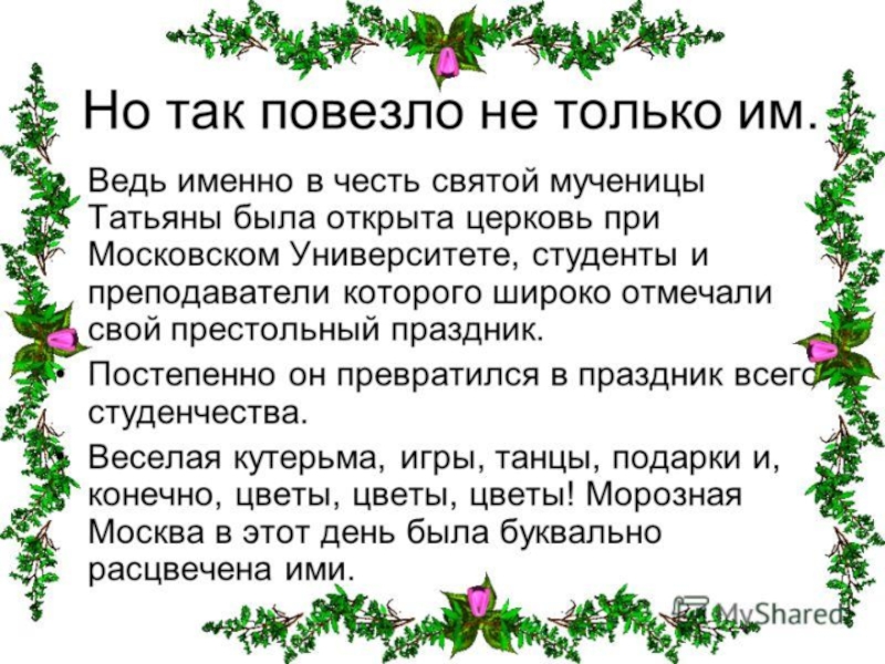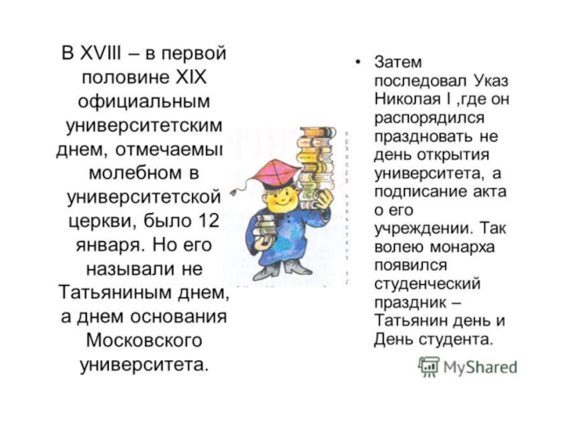 Презентация, доклад День российского студенчества. Татьянин день