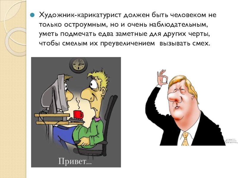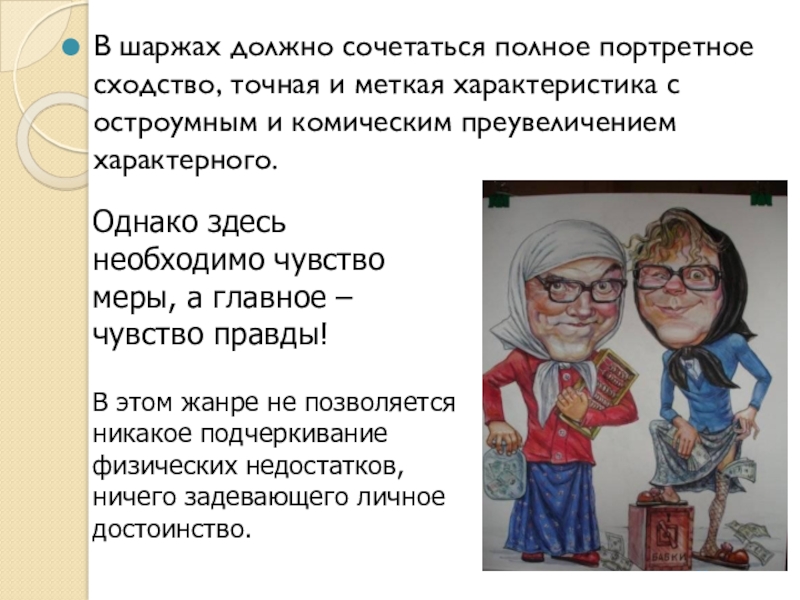 Шаржи делаются на людей, к которым автор относится очень хорошо, с большим уважением, дружелюбно.