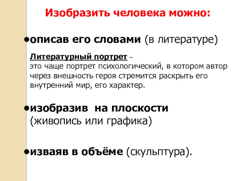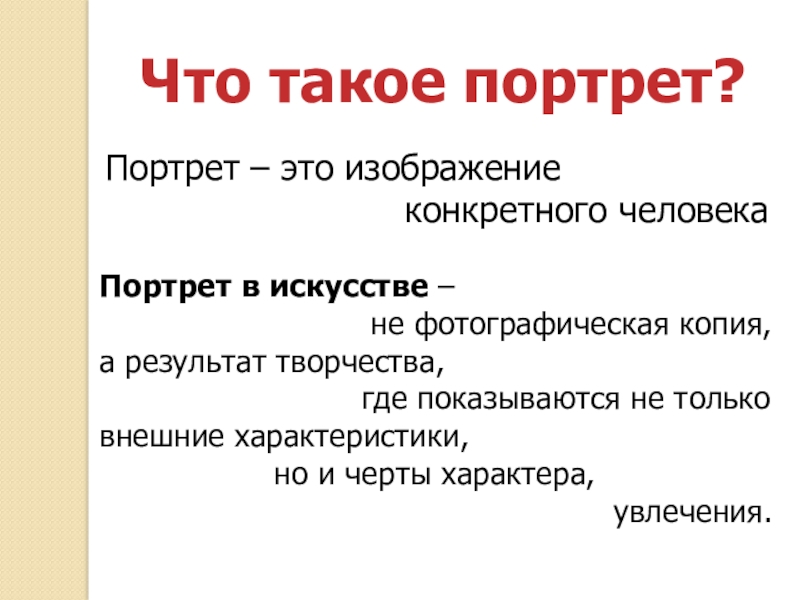 это чаще портрет психологический, в котором автор через внешность героя стремится раскрыть его внутренний мир, его характер.