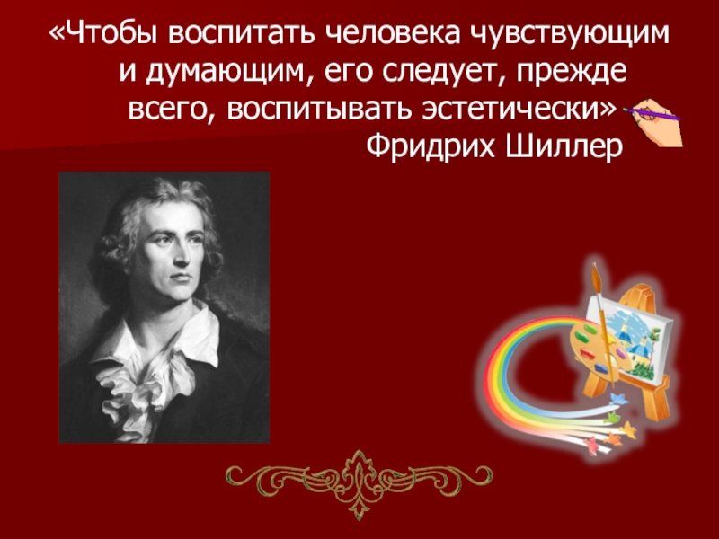 «Чтобы воспитать человека чувствующим и думающим, его следует, прежде всего, воспитывать эстетически» Фридрих Шиллер