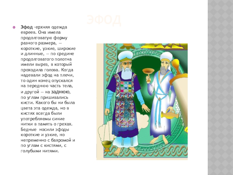 Эфод -ерхняя одежда евреев. Она имела продолговатую форму разного размера, —