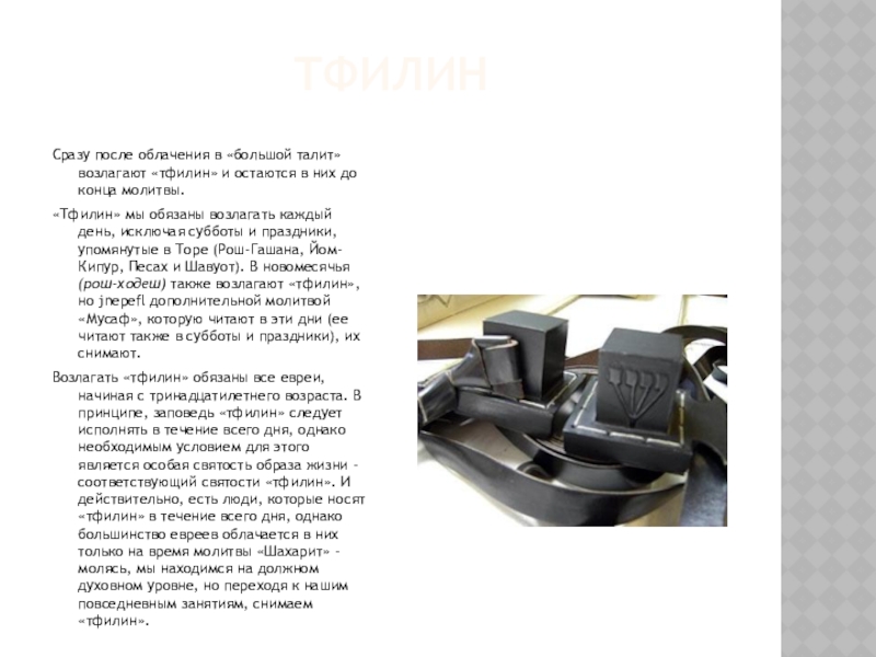 Сразу после облачения в «большой талит» возлагают «тфилин» и остаются в