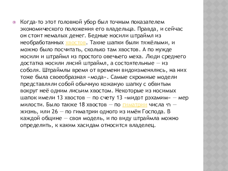 Слайд 16Когда-то этот головной убор был точным показателем экономического положения его владельца.