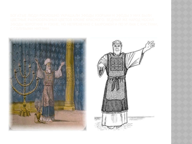 Слайд 20Богатые люди роскошно украшали эфоды узорами и эфоды у них были