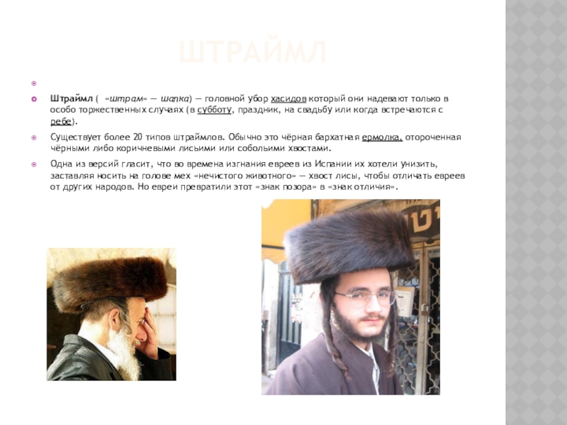 Штраймл ( «штрам» — шапка) — головной убор хасидов который они