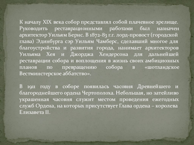 Слайд 10К началу XIX века собор представлял собой плачевное зрелище. Руководить реставрационными