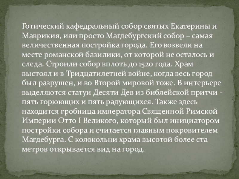 Слайд 6Готический кафедральный собор святых Екатерины и Маврикия, или просто Магдебургский собор