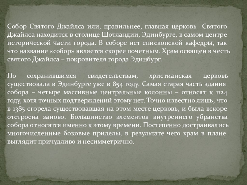 Слайд 8Собор Святого Джайлса или, правильнее, главная церковь Святого Джайлса находится в