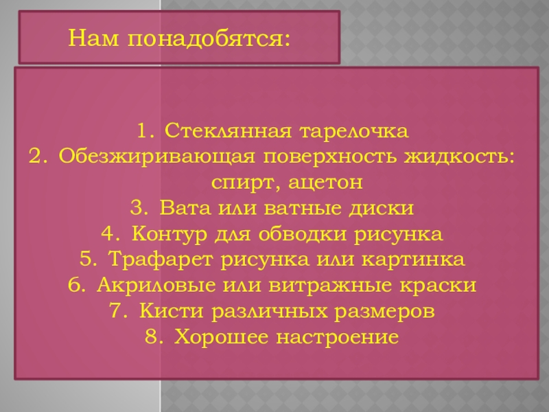 Презентация, доклад Художественная роспись по стеклу (мастер-класс для начинающих)