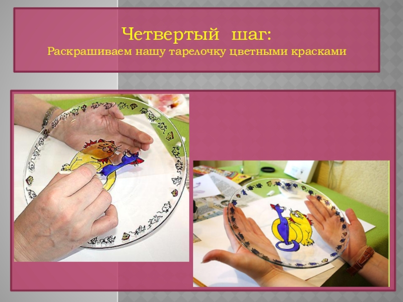 Четвертый шаг: Раскрашиваем нашу тарелочку цветными красками
