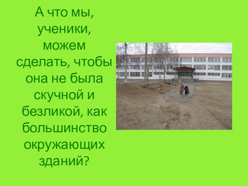 А что мы, ученики, можем сделать, чтобы она не была скучной и безликой, как большинство окружающих зданий?