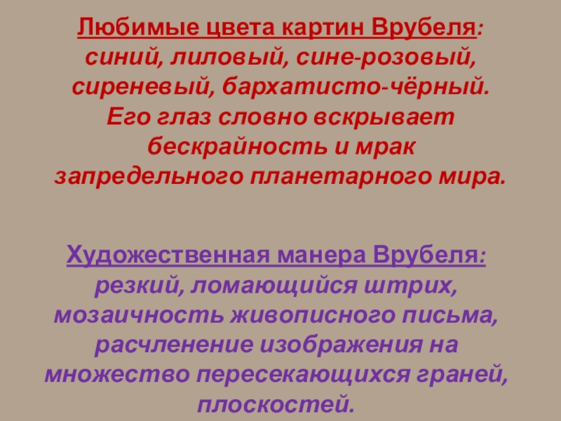 Художественная манера Врубеля: