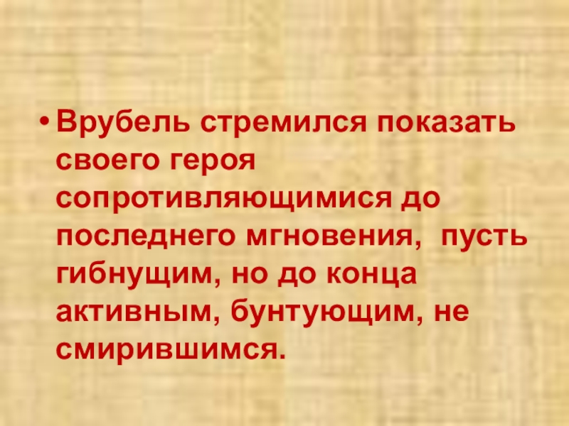 Слайд 24Врубель стремился показать своего героя сопротивляющимися до последнего мгновения, пусть гибнущим,
