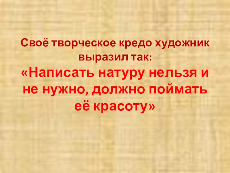 Слайд 6Своё творческое кредо художник выразил так: