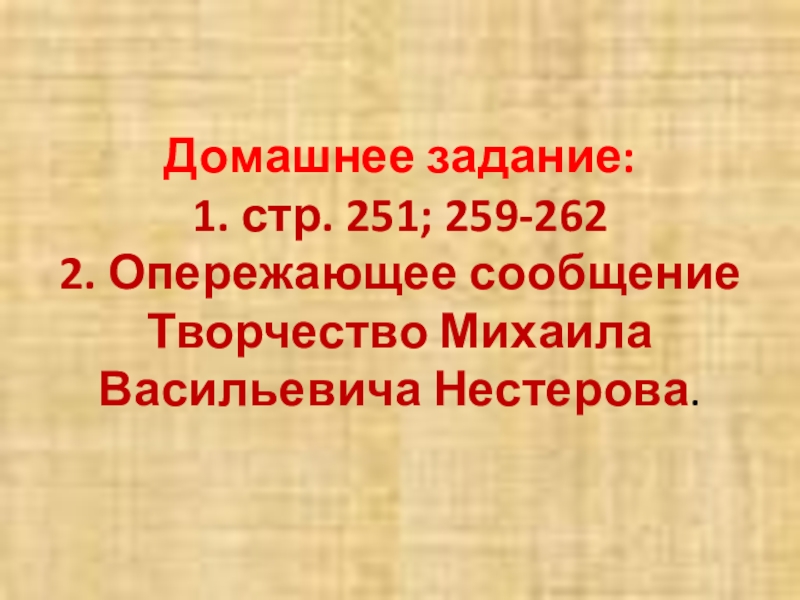 2. Опережающее сообщение Творчество Михаила Васильевича Нестерова.