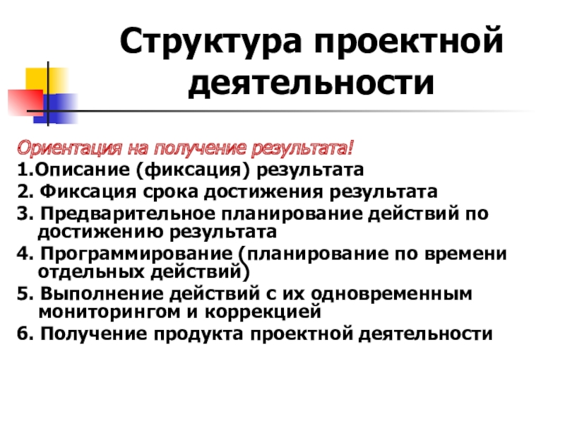 Слайд 14Структура проектной деятельности