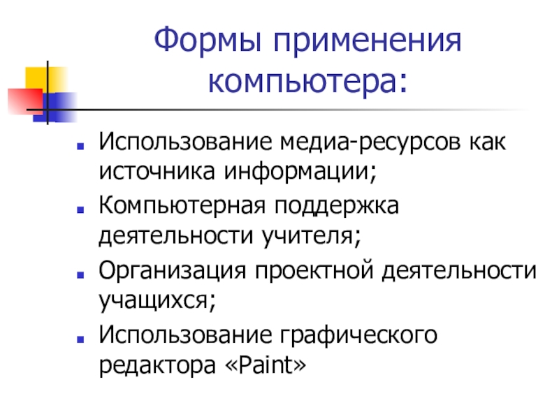 Слайд 17Формы применения компьютера: