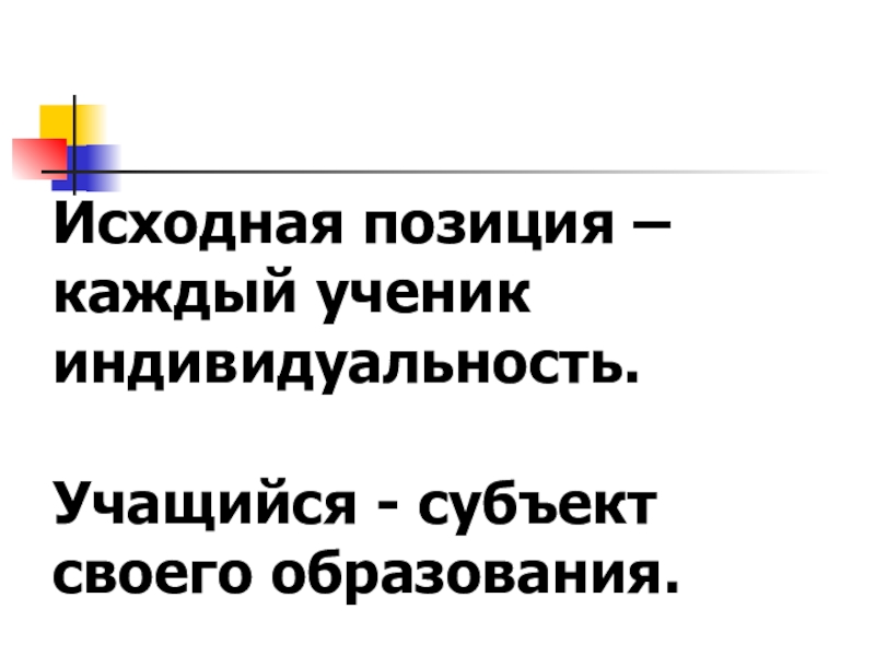 Слайд 19Исходная позиция – каждый ученик индивидуальность.