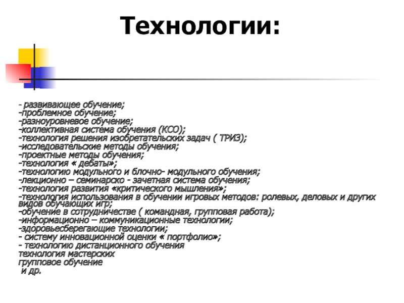 Слайд 8Технология развивающего обучения -