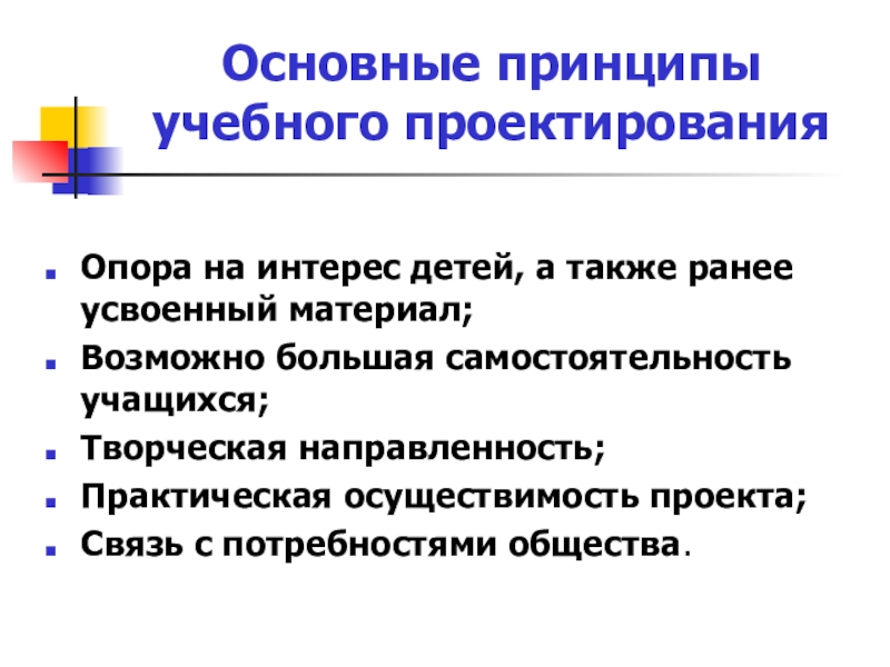 Слайд 15Основные принципы учебного проектирования