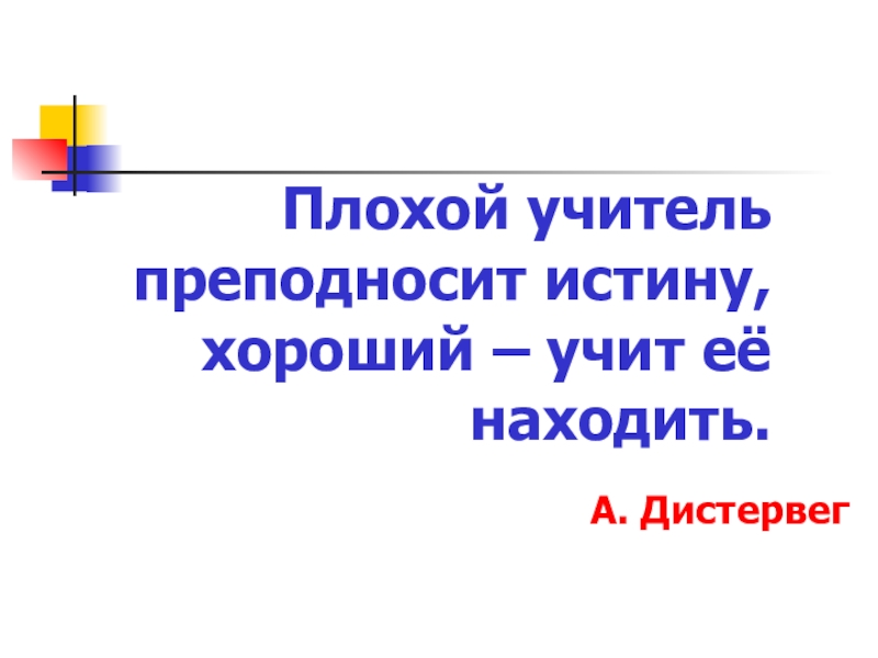 Слайд 2Плохой учитель преподносит истину, хороший – учит её находить.