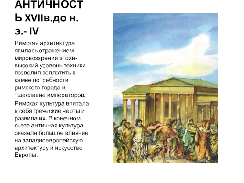 Слайд 4АНТИЧНОСТЬ XVIIв.до н.э.- IV