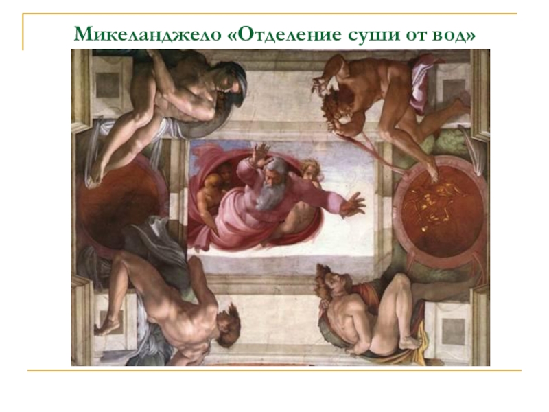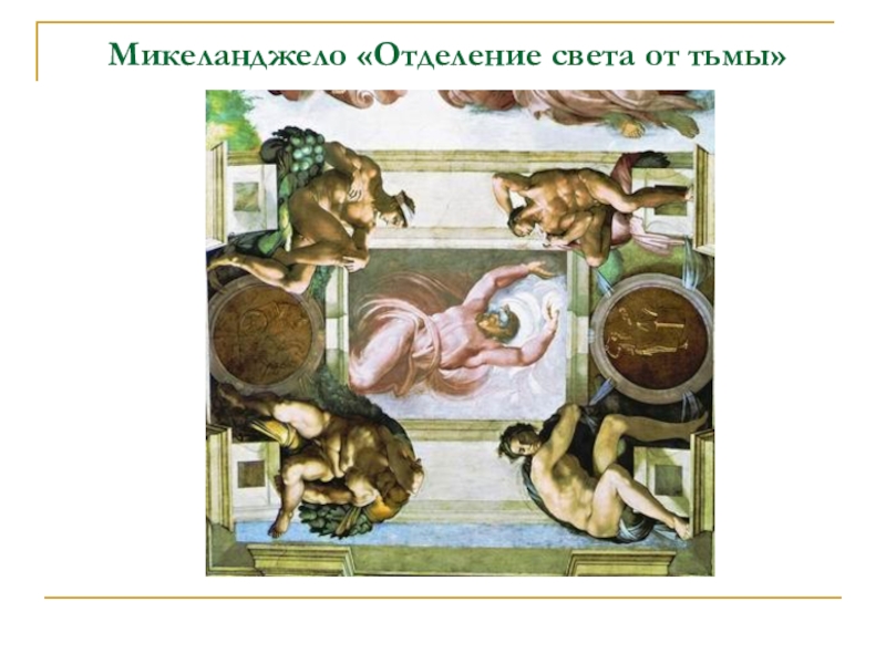 Слайд 29 Микеланджело «Отделение света от тьмы»
