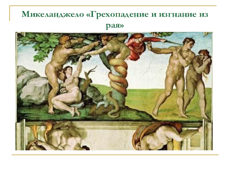 Слайд 33Микеланджело «Грехопадение и изгнание из рая»