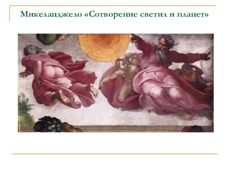 Слайд 30Микеланджело «Сотворение светил и планет»