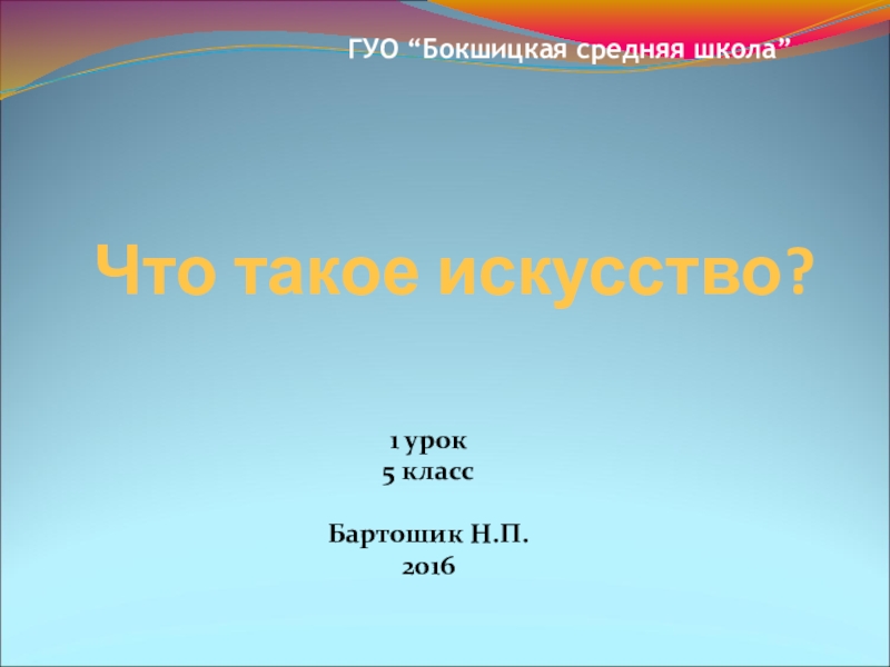 Что такое искусство?1 урок 5 классБартошик Н.П.2016ГУО “Бокшицкая средняя школа”