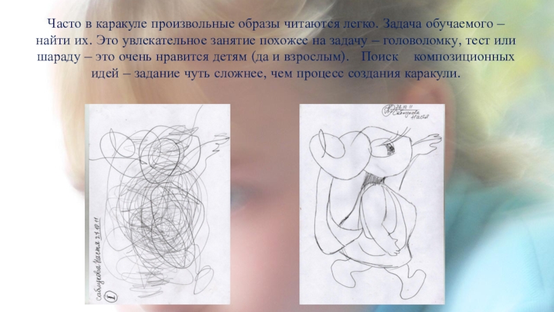Слайд 12Часто в каракуле произвольные образы читаются легко. Задача обучаемого – найти