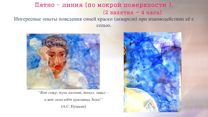 в той или иной технике (в данном случае это восковой карандаш, акварель и соль).