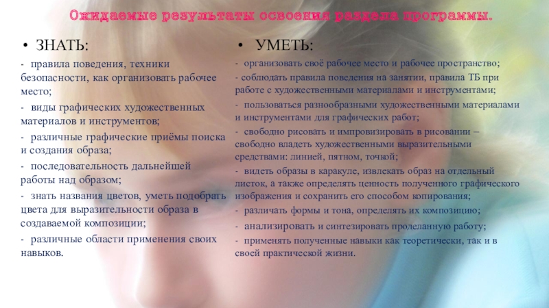 Слайд 24 Ожидаемые результаты освоения раздела программы.