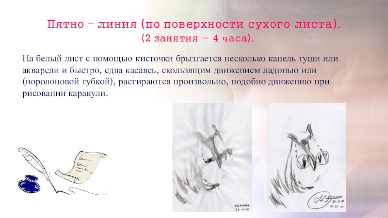 Слайд 20Получившемуся пятну дают высохнуть и рассматривают его так же, как каракули,