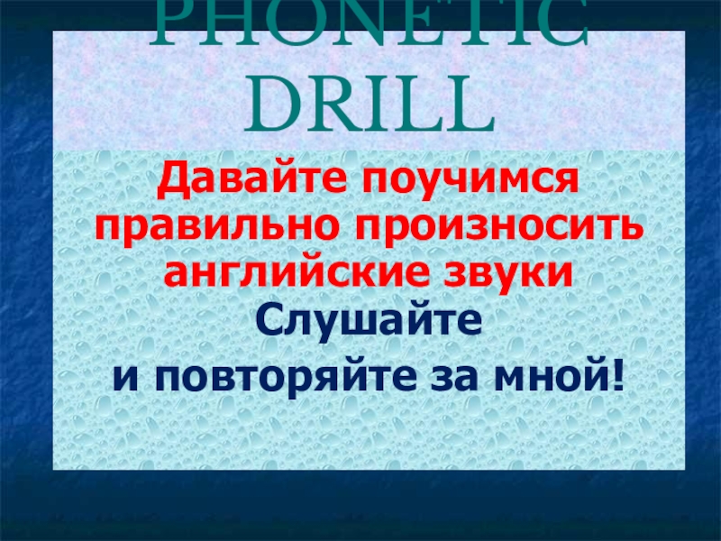 PHONETIC DRILLДавайте поучимся правильно произносить английские звуки Слушайте и повторяйте за мной!