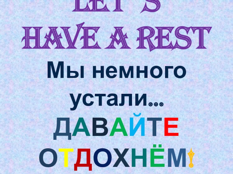 Let`s  have a rest Мы немного устали… ДАВАЙТЕ ОТДОХНЁМ!
